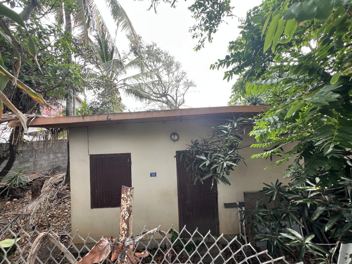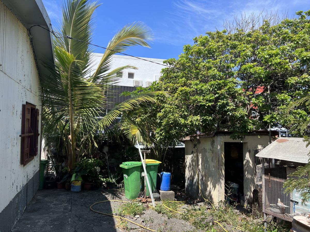 SAINT-PIERRE – RUE LUC LORION – Parcelle de terrain bâti de 491 m², zone Ud, excellente visibilité, plat, angle de rues, emprise de 60%, 15m à l’égout et 20m au faitage, prévoir démolition.
